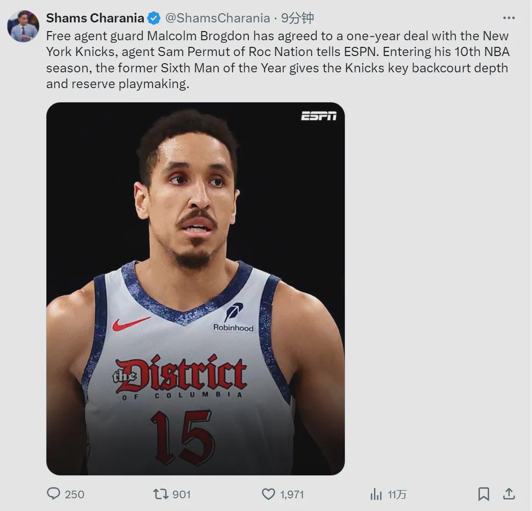 同样是今天,尼克斯官方宣布:一年无保障合同签回兰德里-沙梅特,又用训练营合同签下加里森-马修斯。这三个新援都是后卫,他们仨将争夺一个正式合同名额。NBA竞争太激烈了,连布罗格登和沙梅特,都拿不到一份保障合同。